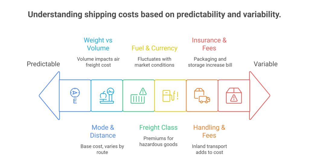 Before we dive into the specific cost components, it’s worth noting that international shipping rates are shaped by a wide range of factors beyond just distance or weight. Understanding these variables helps brokers provide accurate, competitive quotes and prevents unexpected expenses that can erode profit margins.