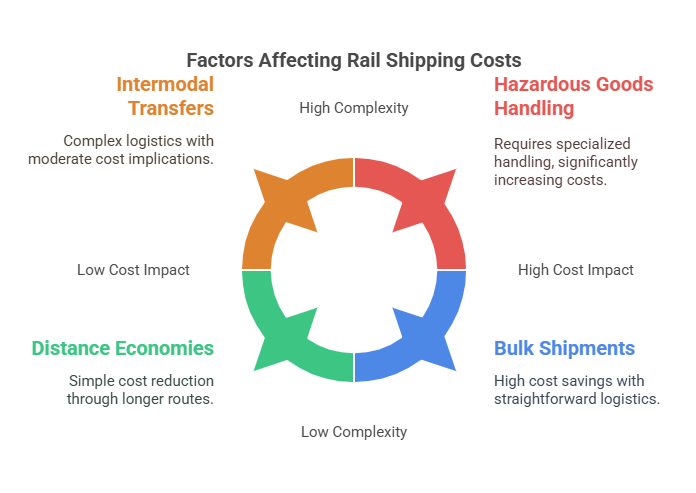 When evaluating the cost of shipping by rail, several factors come into play: